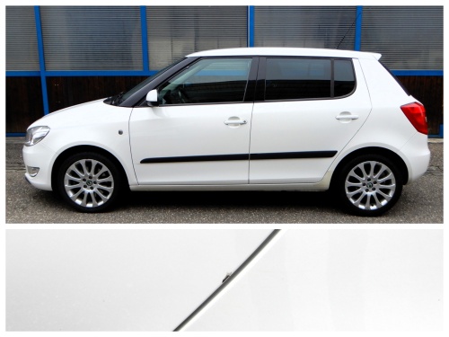 - Ganzes Fahrzeug (inkl. Seitenspiegel und Alufelgen) div. Kratzer, Abschürfungen, Lackschäden und Dellen