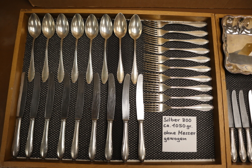 Besteck -> 8 Esslöffel + 10 Essgabel, Silber 800, ca. 1 kg (Messer wurden nicht gewogen)