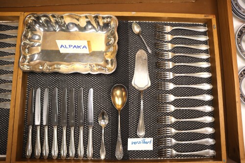 Porzellanset, Besteck u.a. Silber, Weine, Leuchten etc: