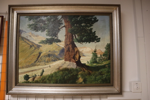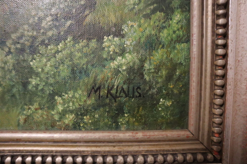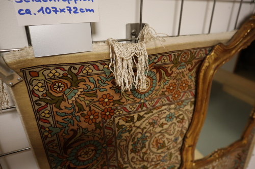 1 Seidenteppich, 1 Bild signiert N. Klaus und 1 Wandspiegel