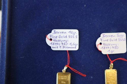 1 Goldbarren Feingold 10 Gramm, gefasst - Fassung: 18 Karat 1,5 Gramm inkl. einem Diamanten