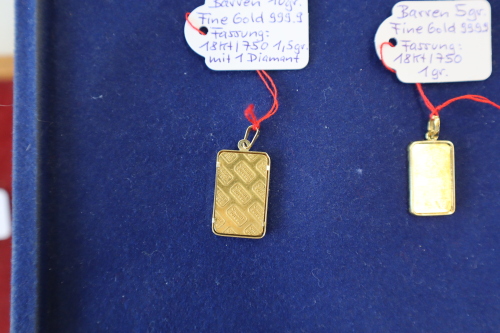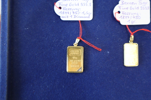 1 Goldbarren Feingold 5 Gramm, gefasst - Fassung: 18 Karat 1 Gramm