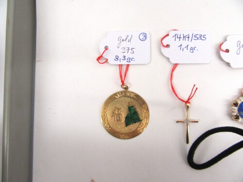 1 Fingerring 9 Karat 2,3 Gramm mit 1 Diamanten und 4 Steinen