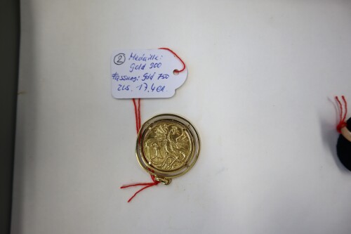 1 gefasste Medaille Basel-Stadt (Medaille Gold 900/1000 & Fassung 18 Karat) - Gesamtgewicht 17,4 Gramm